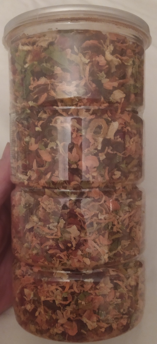 Так как, сейчас проблематично найти мелкие макаронные изделия, которые не будут раскисать, то, возможно, специально для моих вожделенных супчиков с сушеными овощами, приготовлю самодельную тонкую лапшу с большим количеством яиц... Если хватит сил... если не заленюсь. ☺