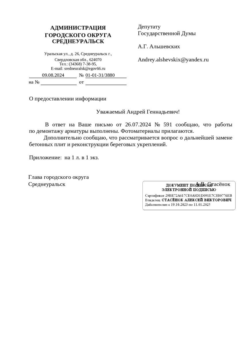 Опасную арматуру убрали с береговой линии напротив ДК.Достаточно оперативно администрация отреагировала на жалобу.Плюсом глава обозначил, что прорабатывает замену бетонных плит и реконструкцию береговых укреплений. Давно пора!