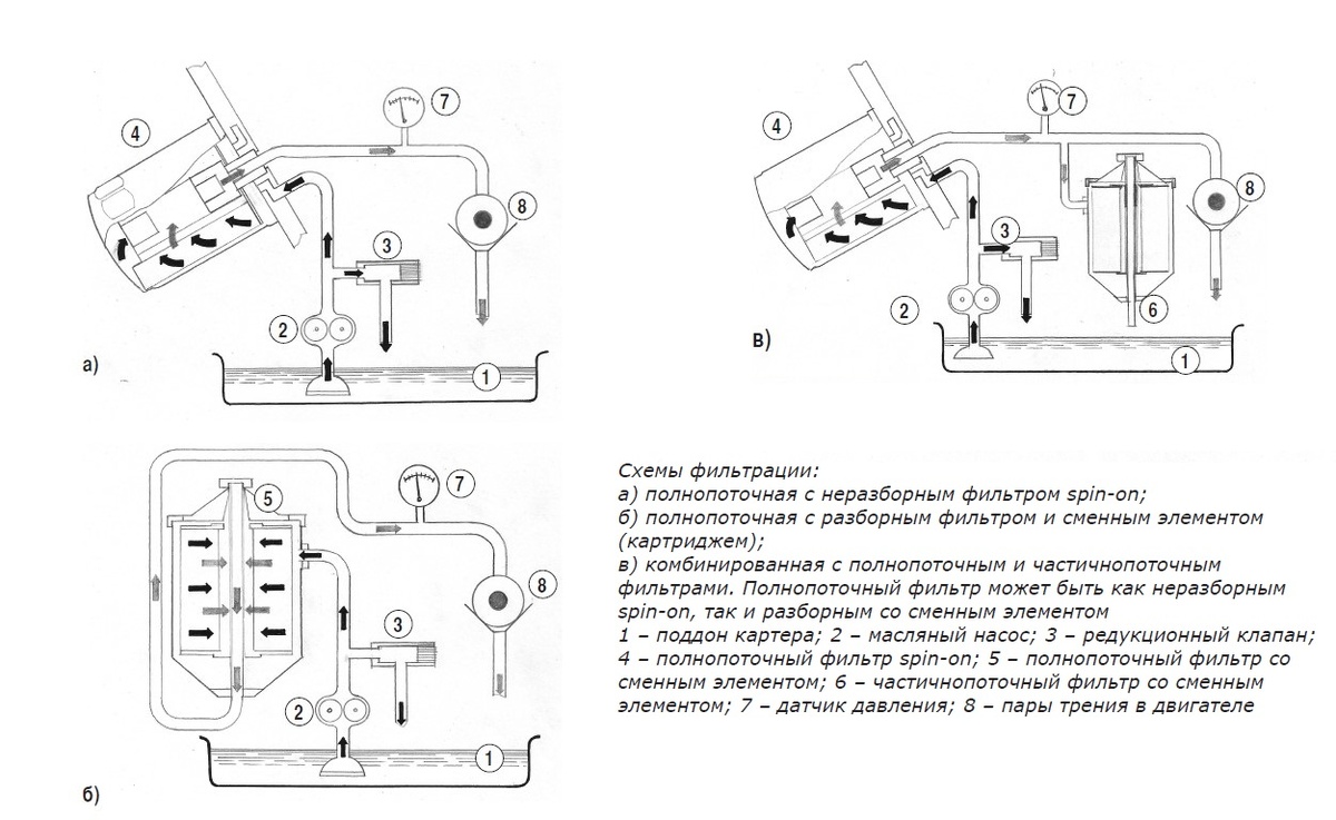 В современных двигателях применяют две схемы очистки масла: полнопоточную и комбинированную.