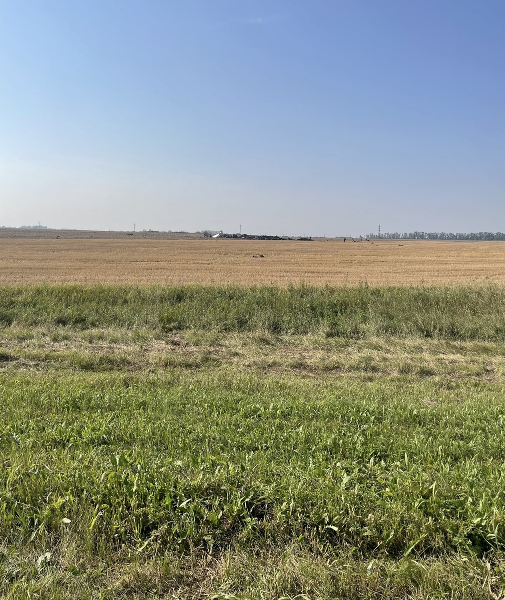 Ранним утром встали и уже через пару часов на трассе наблюдаем скопление людей в форме, проехали, поняли, что что-то случилось, в поле были огромные обломки.