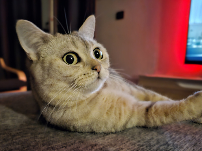 Был обычный вечер, Лира мирно дремала на своём любимом кресле, когда вдруг её разбудил странный шум. Из кухни доносилось шуршание и бормотание, как будто происходило что-то необычное. Лира потянулась, лениво зевнула и, ведомая любопытством, направилась на звук. Когда она вошла на кухню, её глаза мгновенно расширились. Ведь на кухне её ждало нечто необычное — на столе лежал большой марлин. Этот морской обитатель был больше чем сама Лира и, надо признаться, выглядел не так, как ей хотелось бы видеть свой ужин. Однако, этот гигант всё же не смог оставить её равнодушной. Поэтому набравшись немного смелости она решила подойти поближе. Лира сначала запрыгнула на стол и замерла. Затем, убедившись, что рыба не собирается нападать, набралась смелости, подошла поближе рассмотреть её. Она долго разглядывала марлина, пытаясь понять, с какой стороны подступиться к такой огромной рыбе. Наконец, Лира аккуратно протянула лапку и коснулась марлина. Рыба не отреагировала, и Лира решила рискнуть. Она ост