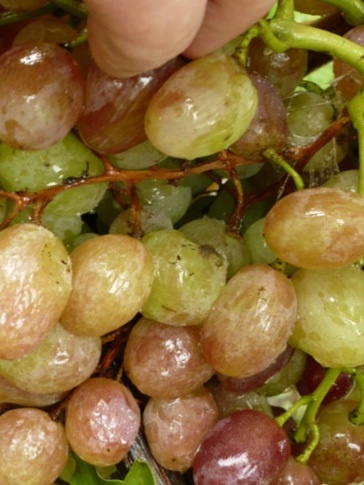 Добрый день,уважаемые виноградари! Конечный результат наших трудов-это получение урожая.И становится обидно,если уже вот-вот мы должны попробовать ягоды,а грозди почему то начинают усыхать. Автор вопроса не предоставил фото,поэтому остается только предположить, что за проблема и как с ней бороться. Когда я озвучила,что возможно у читателя на винограде "паралич" гроздей,он даже "испугался".Да,звучит не особо приятно. Болезнь проявляется,на наш взгляд,внезапно.Сегодня висела красивая и здоровая кисть,а завтра часть ее засохла. Безусловно признаки заболевания были,но мы их просто не заметили. К началу заболевания в любом месте гребня(а чаще всего в разветвлениях)появляются точечные или продолговатые пятна,которые быстро окрашиваются в темно-бурый или черный цвет. Эти пятна не сразу влияют на качество грозди,но расширяясь,поражают главную ось или боковую ветвь гребня. Вода и питательные вещества перестают поступать и изолированные части грозди засыхают. Нередко "параличу"гроздей сопутству