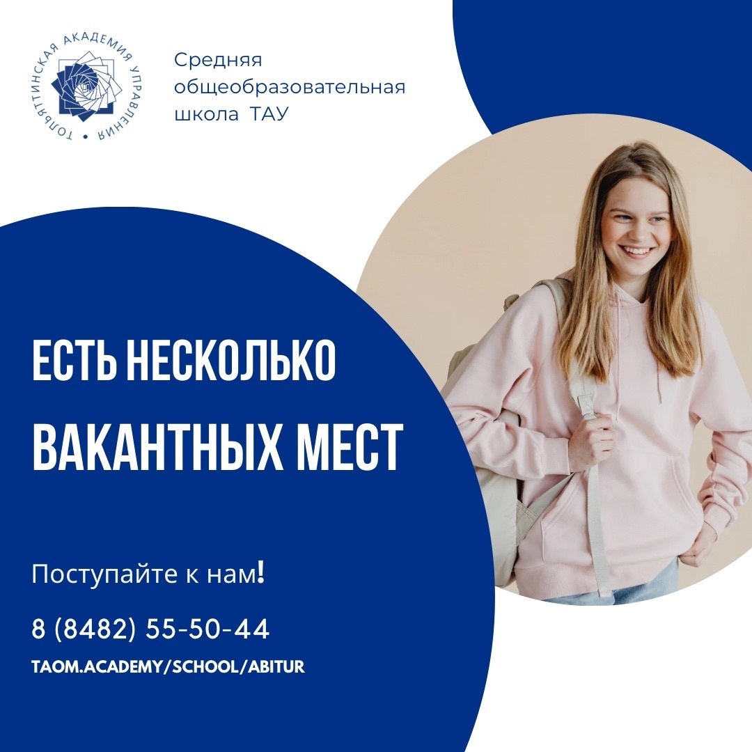 Внимание! Успейте подать заявление в среднюю общеобразовательную школу ТАУ! Есть несколько вакантных мест!