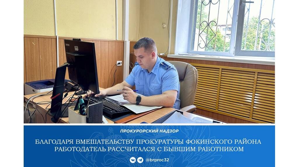 В прокуратуру Фокинского района Брянска обратился работник местного МУПа. Он пожаловался на несвоевременный расчет при увольнении. В ходе проверки выяснилось, что мужчина работал в организации более лет. В мае 2024 года он расторг трудовой договор по своей инициативе. Выплату зарплаты, премии, компенсацию за неиспользованный отпуск ему в день увольнения не произвели. Руководителя предприятия привлекли к административной ответственности. В ходе прокурорской проверки работнику перечислили все причитающиеся деньги. В Брянске прокуратура помогла уволившемуся работнику МУПа выбить причитающиеся выплаты