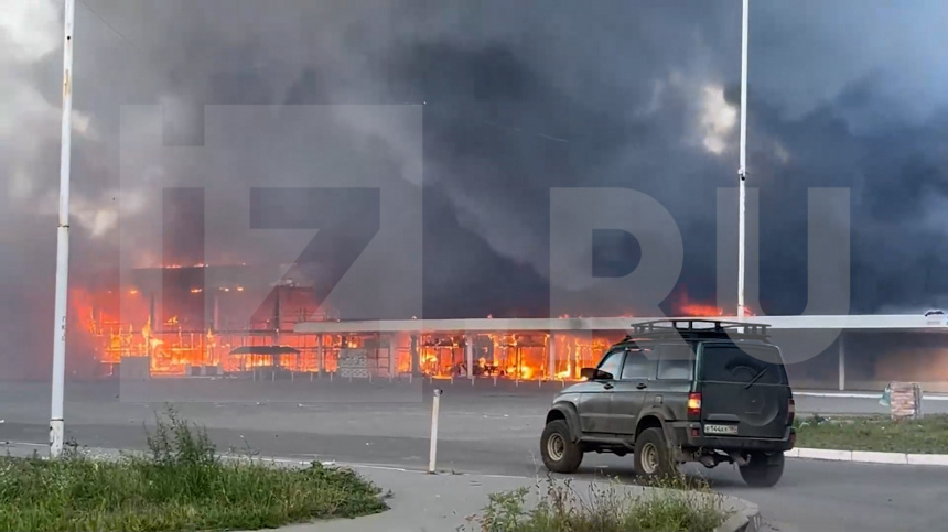 Возгорание началось после обстрела со стороны ВСУ. Фото: 5-tv.ru Кадры с места пожара в донецком ТЦ «Галактика» появились в распоряжении 5-tv.ru. На них видно, что все здание объято пламенем, а в небо поднимается дымовая завеса. Ранее Вооруженные силы Украины атаковали торговый центр, находящийся в Петровском районе, на западе города. По всей видимости, речь идет о прямом попадании, но точный вид вооружения пока не установлен. Согласно последним данным, в результате атаки украинских боевиков пострадали два мирных жителя. Сведений о погибших не поступало. Российские регионы, в том числе и Донецкая область, регулярно подвергаются атакам с украинской стороны после начала спецоперации, о начале которой президент России Владимир Путин объявил в конце февраля 2022 года. ВСУ применяют не только беспилотники, но и обстреливают приграничные регионы ракетами. Ранее 5-tv.ru сообщал, что российский боец сжег украинскую БМП в Курской области.