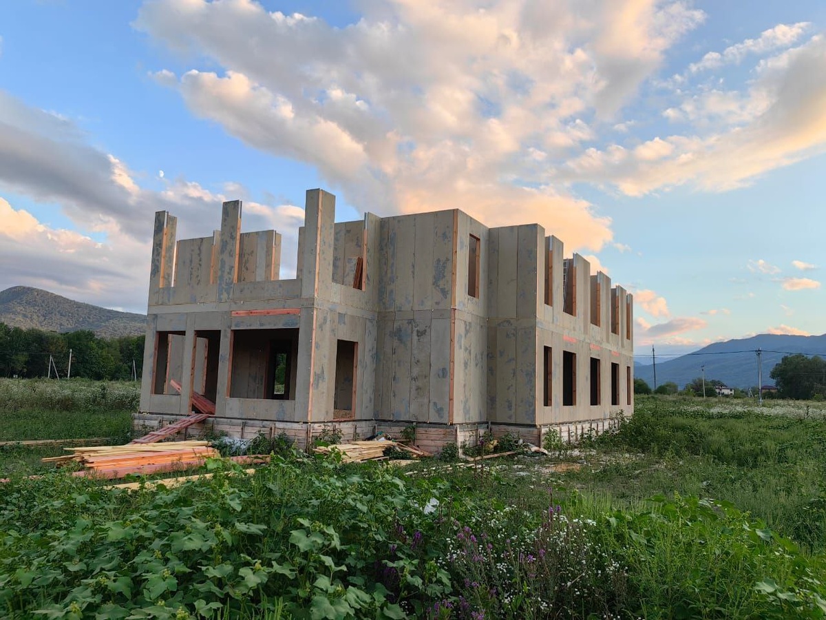 Завершающий этап возведения стен второго этажа. С понедельника приступаем кровельным работам и окна уже тоже заказаны. До зимы, скорее всего, ограничимся наружной отделкой и потом по мере поступления финансов будем спокойно делать все внутренние работы и заниматься проводкой коммуникаций.