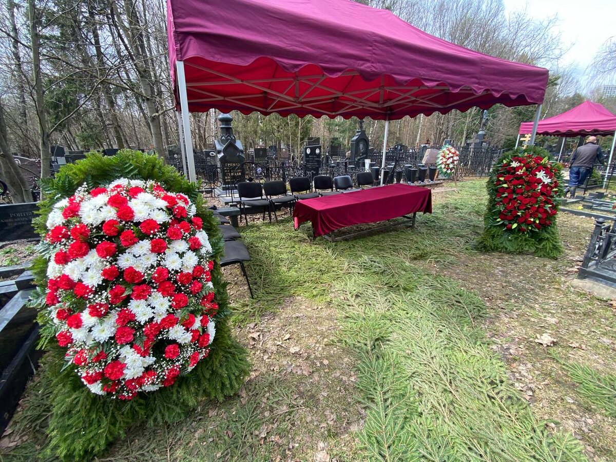 Мы выполнили организацию похорон на Хованском кладбище. Услуга была оказана “под ключ”. Оформление всех документов и участка агент взял на себя. Для комфортного передвижения по городу был заказан ритуальный транспорт VIP класса. Отличается от обычного тем, что у него красивый комфортный салон, а не как в маршрутке. Так же для комфорта прощающихся был установлен шатер и расставлены стулья, а на земле был расстелен еловый лапник. Место прощания было оформлено венками из живых цветов, с нашим ассортиментом можно ознакомится по ссылке: https://kanonritual.ru/venki/venki-iz-zhivyh-tsvetov/?orderby=price-desc Гроб заказчики выбрали двухкрышечный дорогой, с аналогами в наличии можно ознакомится по ссылке: https://kanonritual.ru/groby/?orderby=price-desc Церемония прошла достойно, заказчик остался доволен. Источник: https://kanonritual.ru/zahoronenie-na-hovanskom-kladbishhe/