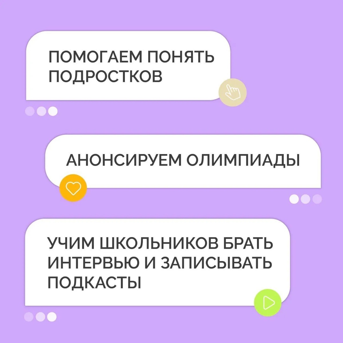 🎥Вместе с нами ребята берут интервью у ректоров вузов, политиков и звёзд. 💡Проходят мастер-классы от олимпийских чемпионов, шеф-поваров, дизайнеров и других профессионалов. 📚У нас вы найдете самые свежие новости из сферы образования, анонсы контрольных и олимпиад #образование_ньюм 🎙️ И подкаст, в котором школьники обсуждают проблемы с профессиональным психологом Ольгой Найман. Хотите, чтобы ваш сын, дочь, внук или ученик попал в команду НЬЮМ ТАСС? Расскажите ему о конкурсе "Медиакласс в ТАСС ". Остались вопросы? Добрый админ ответит в комментариях 👇