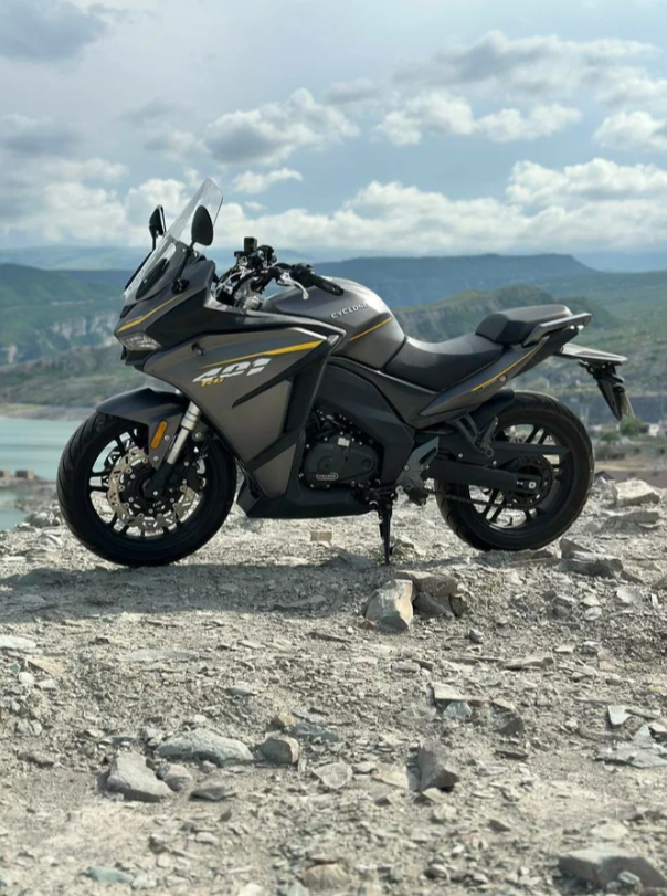 Что вы себе представляете, когда слышите слово «путешествие»? Самолет, поезд, в крайнем случае — машина. Это те коробки, которые изолируют нас от мира, и не дают прочувствовать полностью сам путь. А раз пешком много не пройдешь, и лошади вышли из моды, то вариант остается ровно один — мотоцикл. Сегодня разбираем Cyclone RG401 — один из лучших вариантов для дальнобоя. Это спорт-турист, так что не дайте ему себя обмануть: выглядит мот как спортбайк, но только по первому впечатлению. Мотоциклы этого класса, при всей агрессии в дизайне, все же заточены под длинные прохваты. Более широкий и высокий руль, комфортная подвеска и бак на 21 литр намекают, что стихия RG401 не трек, а трасса. Еще здесь присутствует полноценный ветровик, но есть и более глубокие моменты. Например, передачи на этом Циклоне растянуты, и сделано это как раз для того, чтобы реже переключаться в долгой поездке. Ну а дань спортивности — мощный двигатель. Правда, его задача — не ставить рекорды, а быстро проглатывать бол