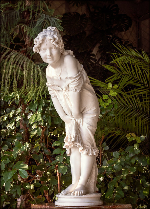 К моменту посещения зимнего сада глаз (и мозг 😅) экскурсанта уже немного "замыливается" многочисленными картинами, вазами и прочими красивыми штуками, которыми наполнен дворец. Наверное, если бы гиды не подводили туристов к мраморной "Девочке" целенаправленно, то многие бы проходили мимо, едва скользнув по ней взглядом. Ну, девочка и девочка. Издалека - ничего особенного. Но если начать рассматривать её вблизи, то впечатление кардинально меняется. А в голове крутится единственный вопрос - "как такое возможно? Неужели это действительно камень?".