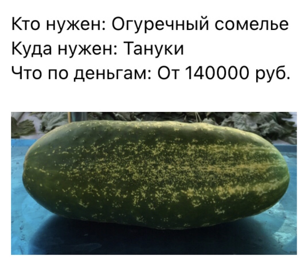 Срочно обратите внимание, иначе кто-то другой перехватит! Очередная интересная вакансия, которую я нарыл на просторах интернета. Вам такое и не снилось! Обратите внимание на зарплату, изучите требования, условия, и в конце есть скрин, куда отправлять резюме. Много требуют, но все не сложно. Если умеете мастерски подойти к любому огурцу, то все остальное приложится. В обязанностях - одно удовольствие. Если, конечно, любите огурцы) Условия- просто сказка. Причём с психологическим сопровождением. Только ради этого стоит пойти. Заманчиво? Тогда быстро предлагать свою кандидатуру! Всем удачи в трудоустройстве!