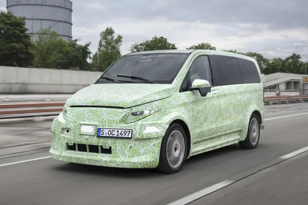 Немецкая компания приступила к дорожным испытаниям прототипа электрического минивэна Mercedes-Benz V-Class 2026 года. Автомобиль пока укрыт камуфляжной пленкой. Также производитель применил нестандартные накладки на кузов, которые изменяют общую форму минивэна. Однако, несмотря на отсутствие официальных заявлений, о немецкой модели уже известны некоторые подробности. Опубликованные снимки показывают, что разработка минивэна еще далека от завершения (фото: motor.es). На это указывает наличие необычной конструкции, размещенной на переднем бампере. Она слишком крупная для того, чтобы появиться на серийном электрокаре. Также в пользу сделанного предположения говорит передняя и задняя оптика, которая выглядит так, словно ее взяли у другого автомобиля. При этом нельзя исключать, что часть конструктивных решений, реализованных в представленном прототипе, со временем появится на серийном минивэне. Отметим, что помимо пассажирской версии Mercedes-Benz может выпустить V-Class в виде коммерческог