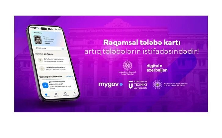 Агентство инноваций и цифрового развития при Министерстве цифрового развития и транспорта, Министерство науки и образования и Азербайджанский технический университет (АТУ) совместно запускают использование цифровых студенческих карт. Об этом сообщили в пресс-службе Агентства. Согласно информации, студенты АТУ теперь будут предоставлять данные студенческого билета в цифровом формате через приложение mygov. Планируется, что в следующем учебном году цифровую студенческую карту можно будет использовать во многих случаях, таких как поступление в университет, вход на экзамены в вуз. Для этого студенту необходимо в свой аккаунт в приложении mygov и в разделе «Карты», где представлены цифровые документы, ознакомиться со студенческой картой, отражающей информацию о нем. Учащиеся также могут поделиться информацией с другими сторонами, нажав на кнопку «Поделиться QR» на карте или предоставив уникальный номер, отображаемый в этом разделе. Возможность поделиться студенческой картой существует и в ф