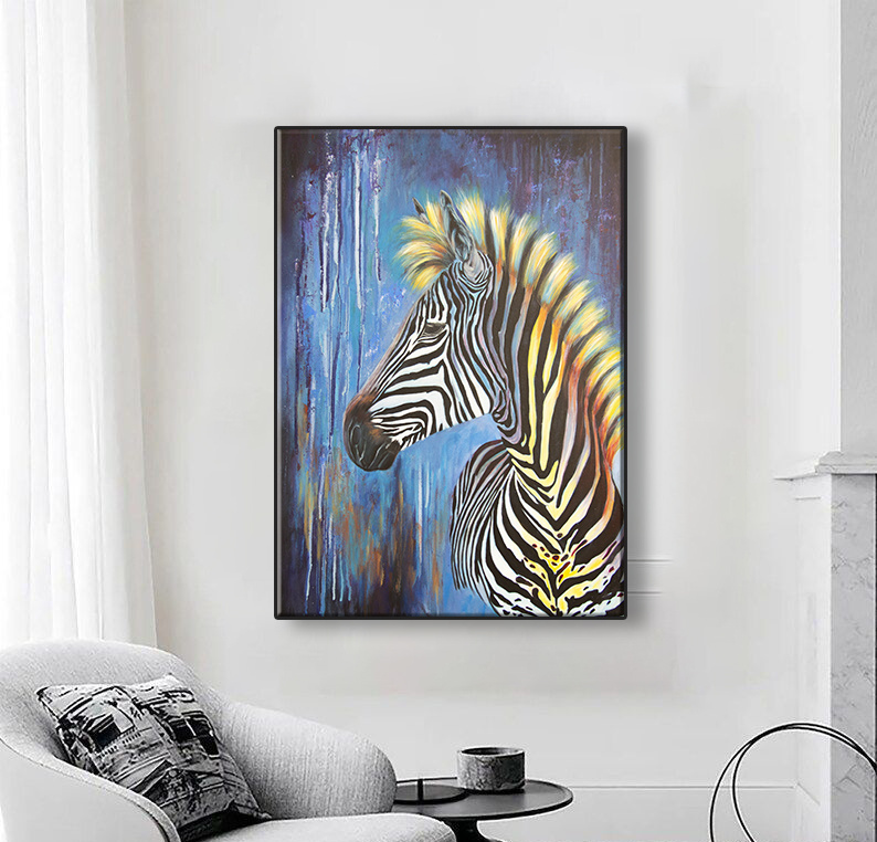 Картина купить в синем цвете поп-арт Зебра.