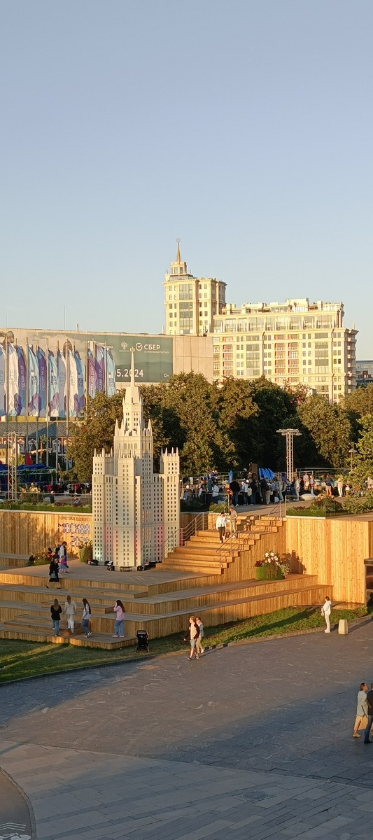 В Москве проходит Масштабный фестиваль "Территория будущего. Москва 2030". Тридцать площадок и каждая со своей смысловой задумкой. Мне это немного напомнило "Урбанистический фестиваль", который проходил в прошлом году. Отличия, конечно искать не буду, потому -что оба интересны. Первая площадка, которую я посетила это -парк искусств Музеон. На открытой территории у подножия Новой Третьяковки установлено несколько тематических зон. Здесь можно попробовать свои силы и удержаться на гребне волны. Конечно, волна искусственная, а попасть можно по предварительной онлайн записи. Есть и искусственное русло Москва-реки, где на каяках преодолеваешь тихое течение реки и проплывашь под сводами боярских палат. А ещё мне понравилась мини выставка, в основу которой заложен сравнительный смысл. По левую сторону костюм Московского государства по Османской моде XVII По правую - современное производство "Сделано в Москве" А это сопоставление женского костюма По левую сторону - шёлковое платье -комбина