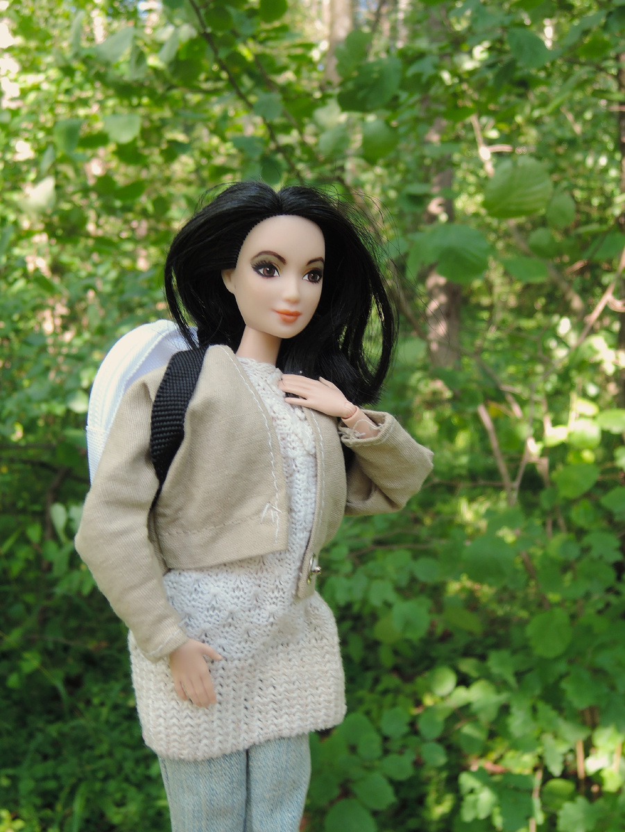 Мы тут недавно в лес выбрались. Ну и моя особенная кукла с нами. Текста на этот раз будет мало, просто покажу мою-мою девочку. Листайте галлерею, почти везде не по одной фотографии. Прошли по лесу, вышли к живописному озеру. Купаться не стали, погода была не та. Но порыбачили и пособирали грибы-ягоды. Всё-таки отдых на природе — самый лучший! Погреться на солнышке тоже удалось, немного. Девушка моя оказалась стойким туристом. Ни единой жалобы на усталость или комаров. Молодец! Поход подошёл к концу. На прощание кунули монетку. И помахали цветам, деревьям, воде и берегу... Я не знаю, как у вас заведено, а мы обычно надеваем в лес, что похуже да постарее. Вот и куколку я облачила в одёжки, которым...не один десяток лет уже. Всё, что на кукле в эту фотосессию, я сшила, когда мне было 13, для моей первой Барби. Одежду нашла недавно вместе с куклой. А пока то, что меня саму удивило. Оказывается, джинсы вполне себе детализированные и функциональные (все карманы!). И отделка тоже радует про