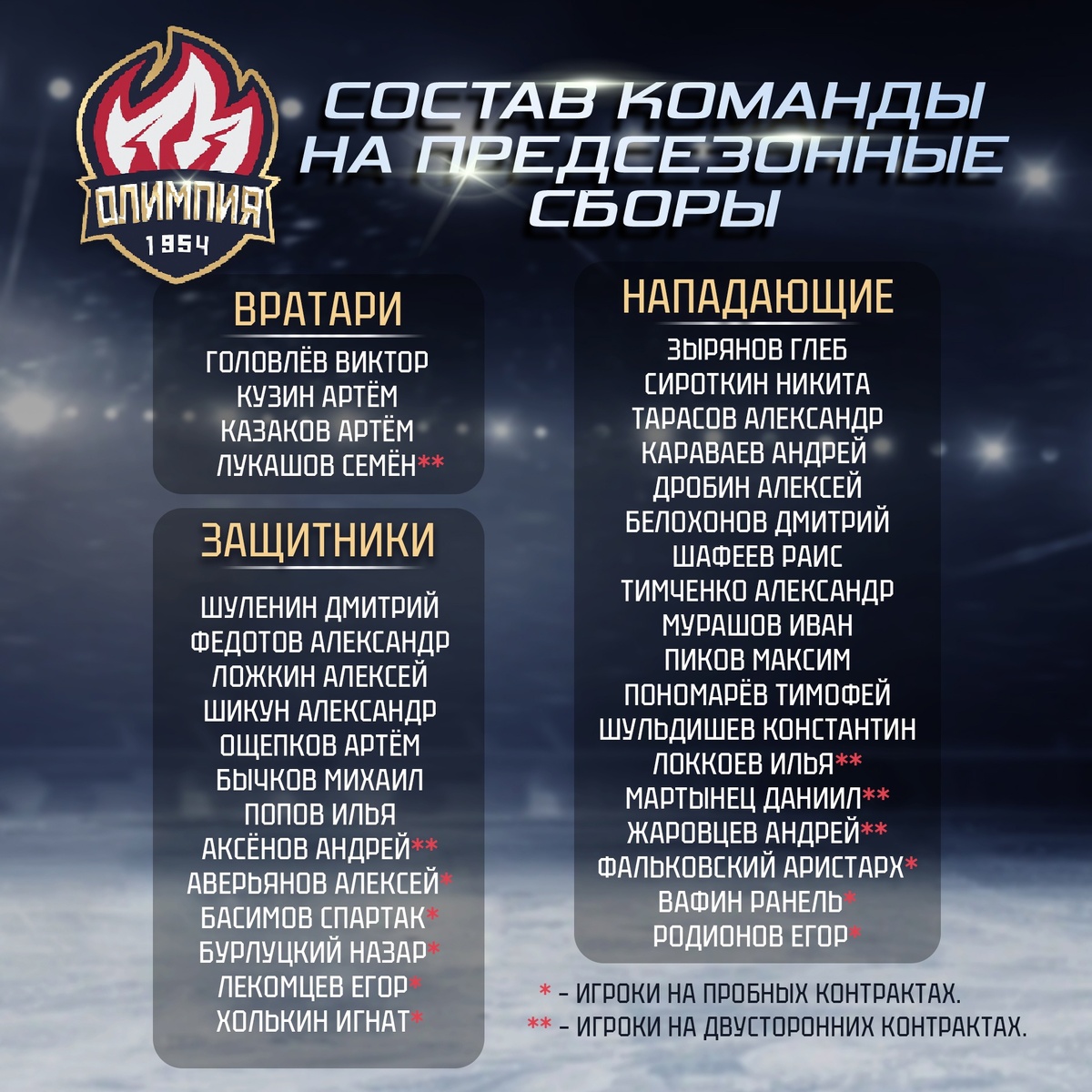 Фото ХК «Олимпия». Кирово-чепецкий хоккейный клуб «Олимпия» опубликовал состав команды на просмотровые сборы к предстоящему сезону 2024/2025 в ВХЛ. Клуб сделал ставку на сочетание в составе опытных и перспективных молодых хоккеистов. При этом особое внимание уделено игрокам, выступавшим в молодёжной команде «Олимпия», и воспитанникам кировского хоккея в составе много знакомых имён. Главным тренером команды «Олимпия» в сезоне 2024/2025, который команда проведёт в ВХЛ, утвердили Юрия Култынова. Чепецкий клуб одним из последних в лиге объявил о составе тренерского штаба. Радикальных изменений не произошло: должность главного тренера оставили за Юрием Култыновым, который вёл команду последние три молодёжных сезона. Его ассистентом остался Алексей Демаков, с которым они хорошо сработались в последние два года. Вратарской линией занимается Денис Перетягин, в начале текущего года сменивший на позиции в связи с травмой Дмитрия Якимова. Есть в тренерском штабе и новые лица: вторым ассистенто
