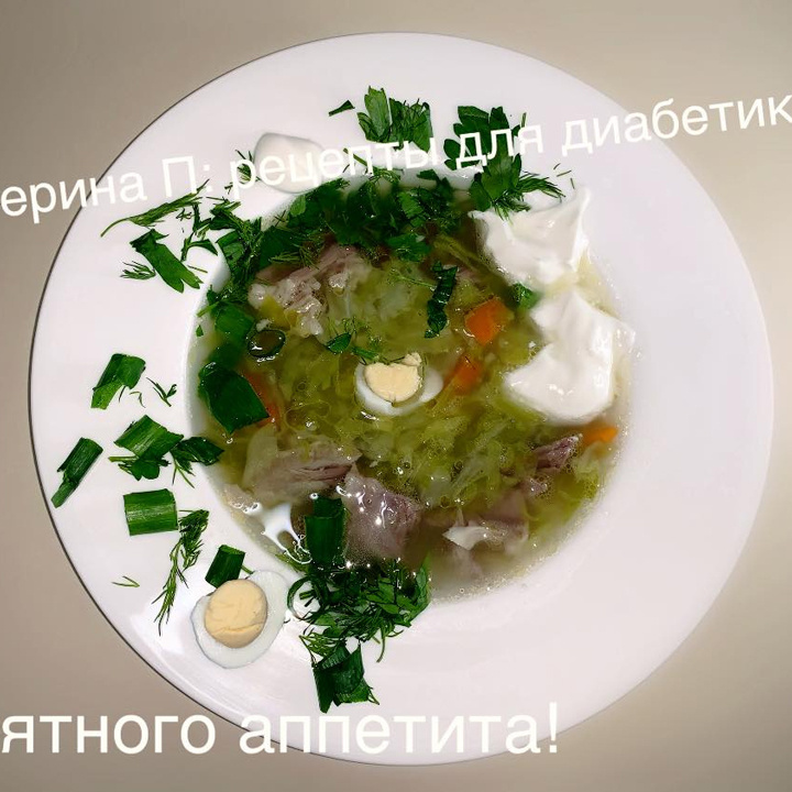 Подавать щи со сметаной (или без), украсив зеленью. Можно добавить варёное яйцо.