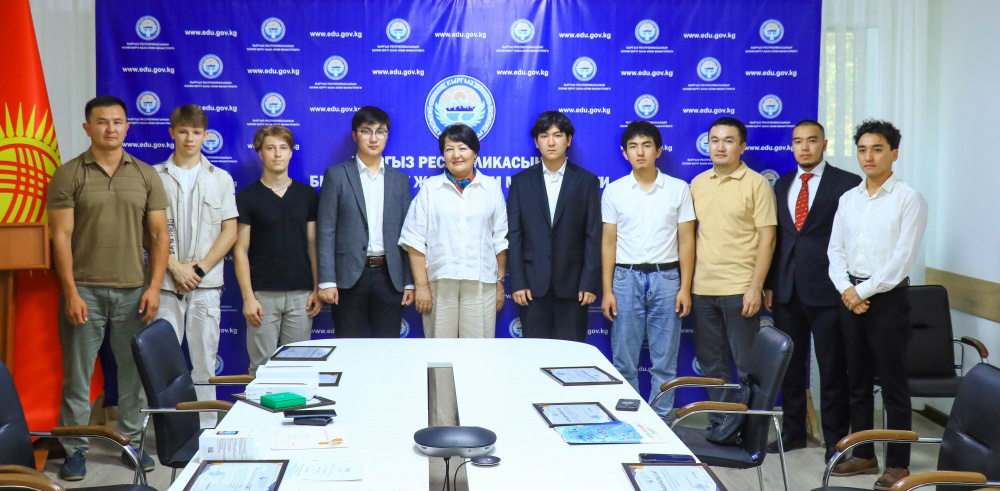 Кыргызстанские школьники успешно выступили на 54-й Международной олимпиаде по физике и IBO 2024, завоевав бронзовые медали и почетные грамоты. Министр образования поздравила победителей и их тренеров. • Кыргызстанские школьники продемонстрировали выдающиеся результаты на 54-й Международной олимпиаде по физике и международной олимпиаде по биологии IBO 2024. • Министр образования Кыргызстана Догдуркул Кендирбаева поздравила победителей и вручила им планшеты, смарт-часы и благодарственные письма от министерства. • На олимпиаде по физике бронзовую медаль завоевал Бектур Баратали, учащийся 11-го класса Бишкекского лицея им. Ч. Айтматова, а почетную грамоту получил 10-классник Аскар Абдиев из Национальной школы-лицея инновационных технологий им. А. Молдокулова. • В олимпиаде по химии бронзовую медаль завоевал Иван Решетников из международной школы UWIS, а почетную грамоту получил Эржан Жапаров, учащийся 11-го класса Ысык-Кульского лицея им. Х. Карасаева. • На международной олимпиаде по биоло