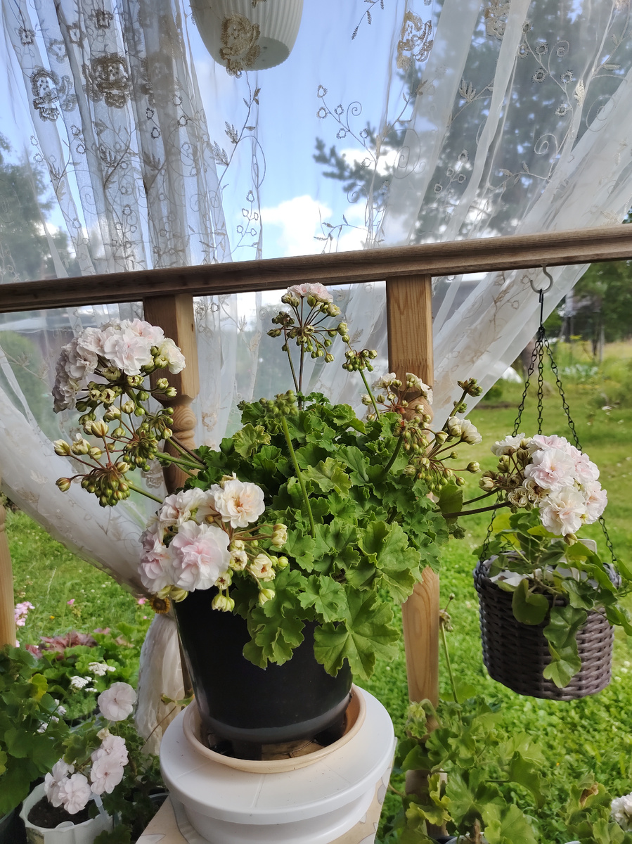 Это 13 сорт в моей коллекции, на момент покупки был не дешёвый и в 2023 году был подарен мне по моей просьбе мужем на 8 марта 😁 Первый сезон уже шикарно цвела. Я никак не могла на нее насмотреться. И днём, и ночью я фотографировала. Осенью была обрезка, а весной, когда она попыталась цвести, я удалила несколько цветоносов, понимая, что большую цветущую пеларгонию мне будет сложно перевезти. После переезда пересадила мою царицу в 12 литровый горшок. Она немного оэоьаодела от такого подарка и новые цветоносы долго не выдавала, наращивая корни. Я ее даже стыдить начала и поставила между цветущих соседок, показывая, чего я от нее хочу ))) С июля дело пошло на лад и сейчас моя любимица выглядит поистине по царски. Праздничный салют И ведь это будет продолжаться не меньше месяца, и мне придется везти её в таком виде домой И вот ведь какая она - весной я удаляла цветоносы когда она сидела в 2 литрах, чтобы мне было проще. А теперь мне придется везти ее в 12 литрах всю в цветах, ибо рука