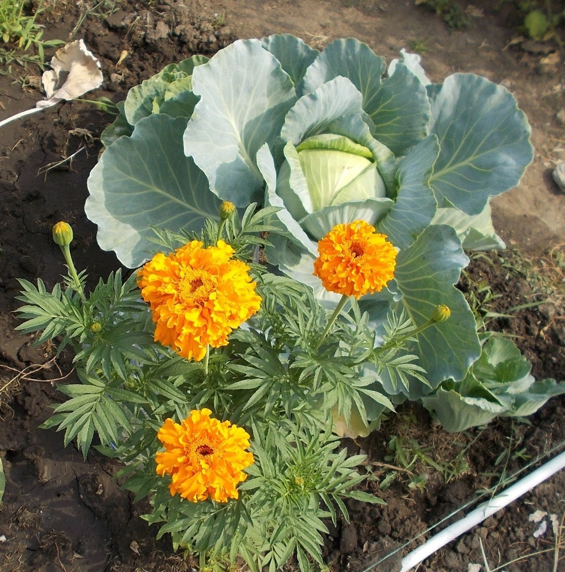 Бархатцы необходимы на огороде- это защитники от вредителей на капусте.