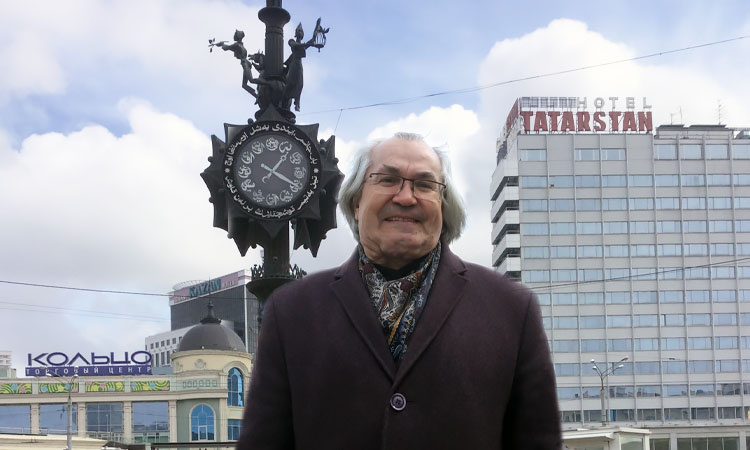 Буду признателен за подписку в Телеге: https://t.me/koshkazan Идея их создания пришла в голову художнику по металлу Игорю Башмакову давно. В 1997 году прямо на месте будущей достопримечательности он показал эскизы первому президенту Татарстана Минтимеру Шаймиеву и получил его одобрение. Городские часы создавались на тему стихотворений Габдуллы Тукая, но скульптор столкнулся со сложностями — его творению не хватало национального колорита. И тогда он обратился за помощью к своему другу-каллиграфу Наджипу Наккашу (на главном фото — прим. автора), который одним из первых начал возрождать традиции забытого древнего вида изобразительного искусства — шамаиля. — Игорь