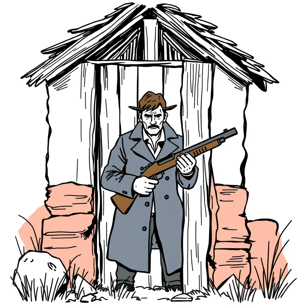 Я, тихо, не шевелясь, ждал исхода данной ситуации. Перед собой видел мужчину, примерно лет сорока пяти с густой бородой и словно гусарскими усами. Одет он был в длинное пальто и ковбойскую шляпу, и что самое интересное, он был в тапочках, обычных домашних тапочках. И тут он прервал уже устоявшуюся тишину. - Зубы покажи. И глаза. Подчинившись его словам, я показал ему зубы, а после и глаза, не думаю, что у кого-то будет желание спорить с вооружённым человеком. Он внимательно, будто стоматолог, осмотрел мои зубы и посветил фонариком в глаза. - Да ну. Это че это ты? Не тварь проклятущая что ли?,- воскликнул он. - Человек вроде,- ответил я. - Ну черт с тобой. Заходи. Рассказывай. Кто таков? Что надо? Сразу говорю. Захочешь ограбить, буду грызться. - Мужик, не собираюсь я тебя грабить. Я не понимаю, что происходит вокруг.