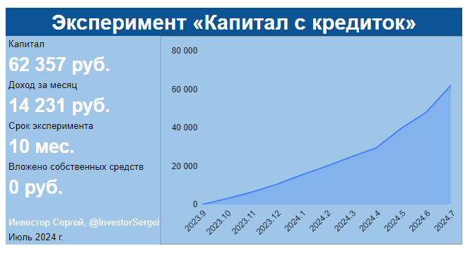 Подведем итог 10 месяца эксперимента «Капитал с кредиток», в котором зарабатываю деньги полностью на заемные деньги. В июле продолжил оптимизацию кредитов и переложился в финансовые продукты под высокие проценты. Будущий доход эксперимента еще больше вырастет! Сейчас расскажу подробнее. Как вообще возможно заработать на кредитке? Действую по следующей схеме: Еще раз обращу внимание, что не вложено ни копейки собственных денег, только моя дисциплина и внимательность. Доход растет даже выше моих прогнозов: Что сделал в июле: ✔️ Избавился от карты, по которой был кредитный лимит всего 15 000 руб. Меньше кредиток — лучше кредитный рейтинг. ✔️ Переложился в накопительные счета под более высокий процент (18-20%). ✔️ Взял полис накопительного страхования жизни (НСЖ) под 22%. Напишите в комментах, если нужно рассказать об этой схеме? Сейчас в обороте сумма свыше 1 млн руб. А начинал я с дохода в 3 000 руб. в месяц… Терпенье и труд! 1. Общий кредитный лимит, доступный для снятия Складывается