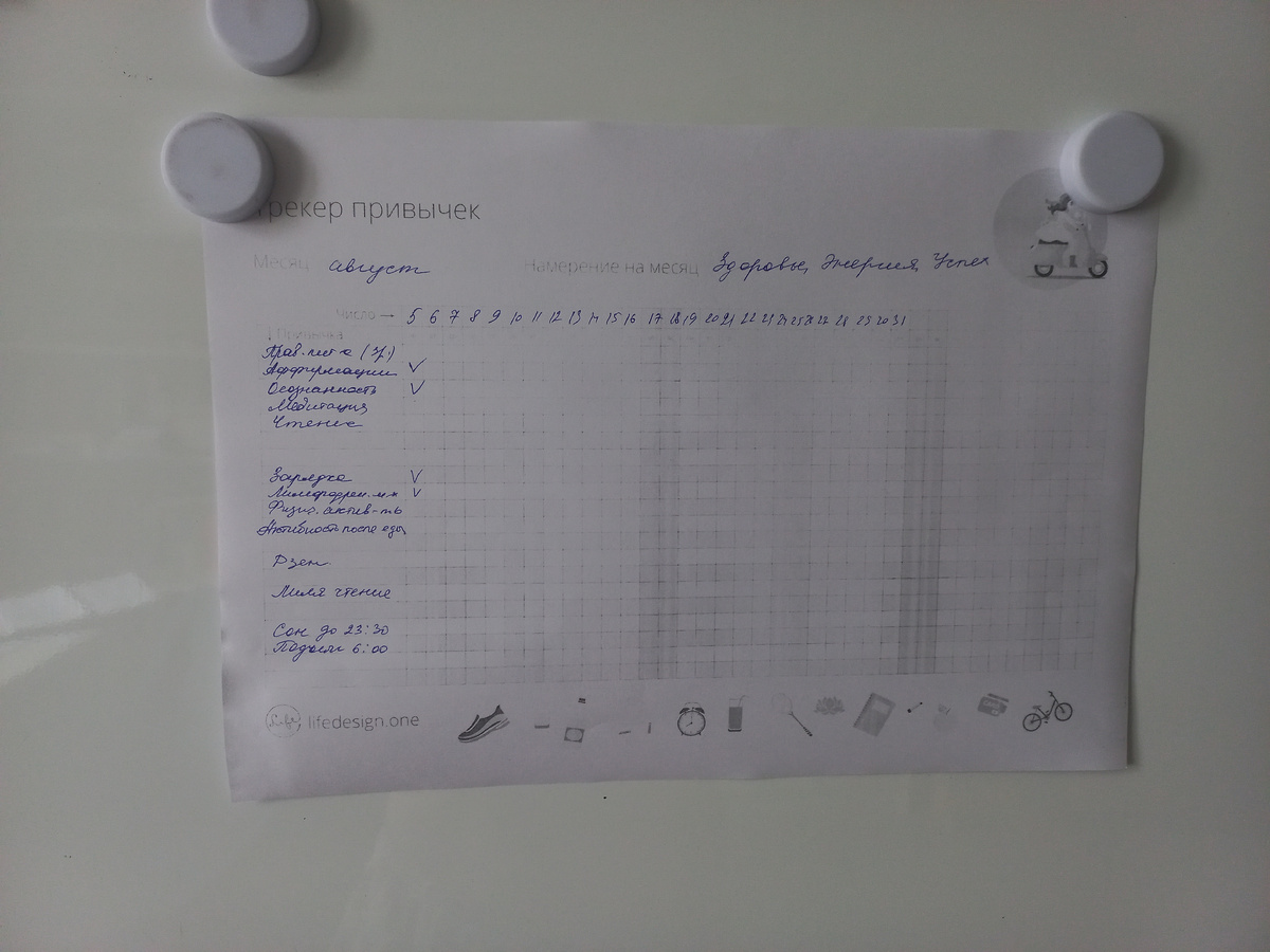 Джон Максвелл сказал: «Твоя жизнь не изменится, пока ты не изменишь то, что делаешь каждый день. Ключ к успеху таится в твоих ежедневных ритуалах». 100500 – столько книг написано про формирование привычек. Наверное, их было бы меньше, если дело касалось простой вещи. Следовательно, привычка – дело непростое, и вот почему. Даже для того, чтобы вести трекер привычек, нужна привычка. Вот такой парадокс. А еще привычка привычке рознь, поэтому ее формирование варьируется от 21 до бесконечного количества дней. Мне больше всего нравится прикреплять новую привычку к уже существующей. Расскажу, как это работает у меня. Аффирмации я прикрепила к чистке зубов и умыванию. Как только пенка касается ладоней, я начинаю массировать лицо, при этом произнося фразу, которая помогает мне настроиться на новый день. С чтением у меня конечно проблем нет – эта привычка (так назвать даже странно: это жизнь, судьба моя, отрада, счастье!) прочно поселилась в моей жизни. Книги повсюду: за готовкой могу почитать