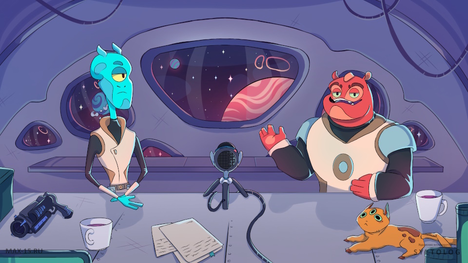 Двое бывших пиратов продолжают свой подкаст о съемках сериала... Кают компания космического корабля. За столом, лицом к зрителю сидят двое… явно не людей. Здарова, жители внешних миров – рявкает сидящий справа толстяк с рожей цвета спелого помидора. Привет жителям содружества – важно и медленно произносит долговязый сидящий слева. Его единственный глаз расположенный строго по центру лица, не мигая смотрит на вас - если вы смотрели наш первый выпуск, вы уже знаете, что мы собираемся снимать сериал. Да не просто сериал – перебивает его толстяк - а основанный на реальных событиях! Вы наверное и не слышали про такую планету как Земля –продолжает циклоп - Есть такая Солнечная система недалеко от системы Эридана. Из достопримечательностей, там только тюрьма строгого режима в поясе астероидов – усмехаясь заявляет красный. Так вот – откинувшись на спинку стула произносит долговязый - как-то босс поручил нам доставить к нему студента-эриданца, а у них как раз экскурсия на Земле была. Ну мы рван