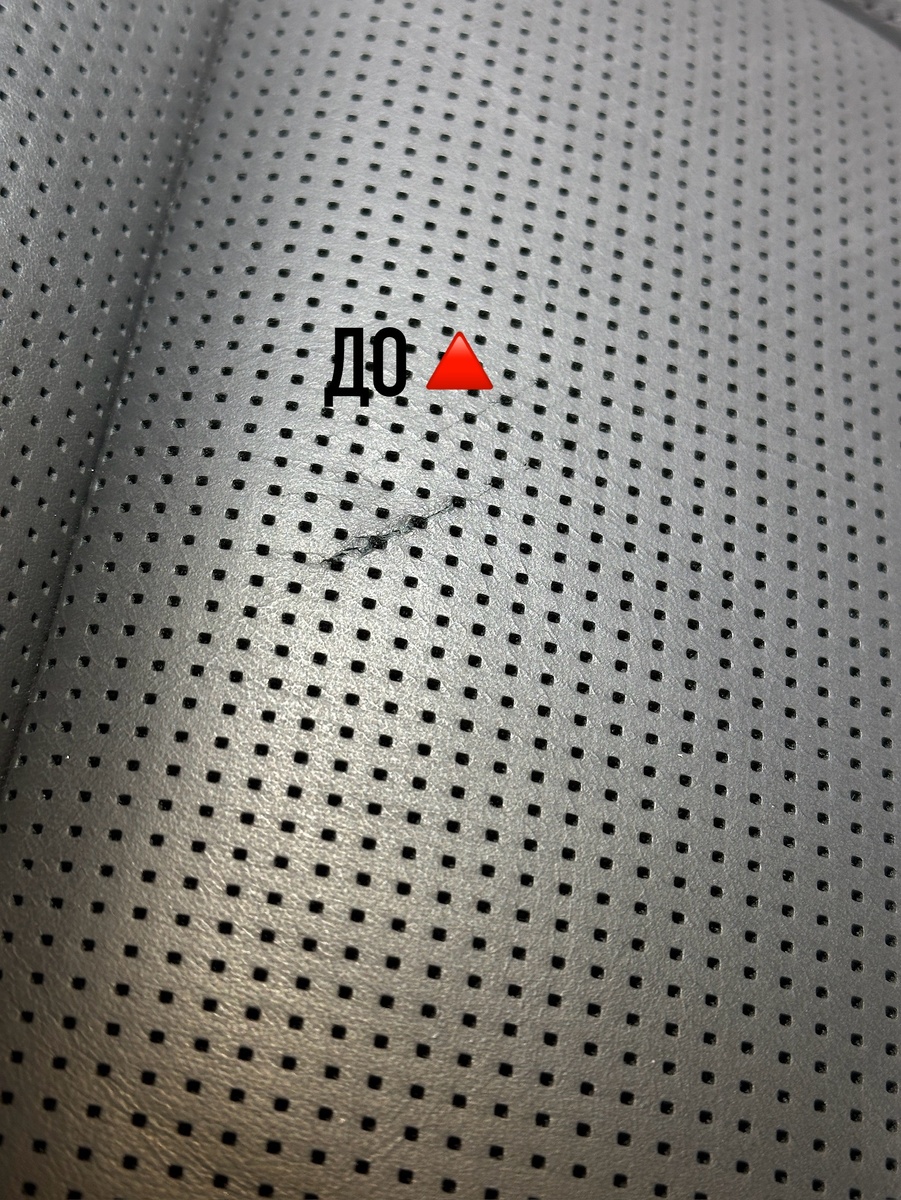 Удачно справились со сложнейшим элементом на кожаной обивке - перфорация. Произвели реставрацию 3-х повреждений на заднем сидении Volvo.