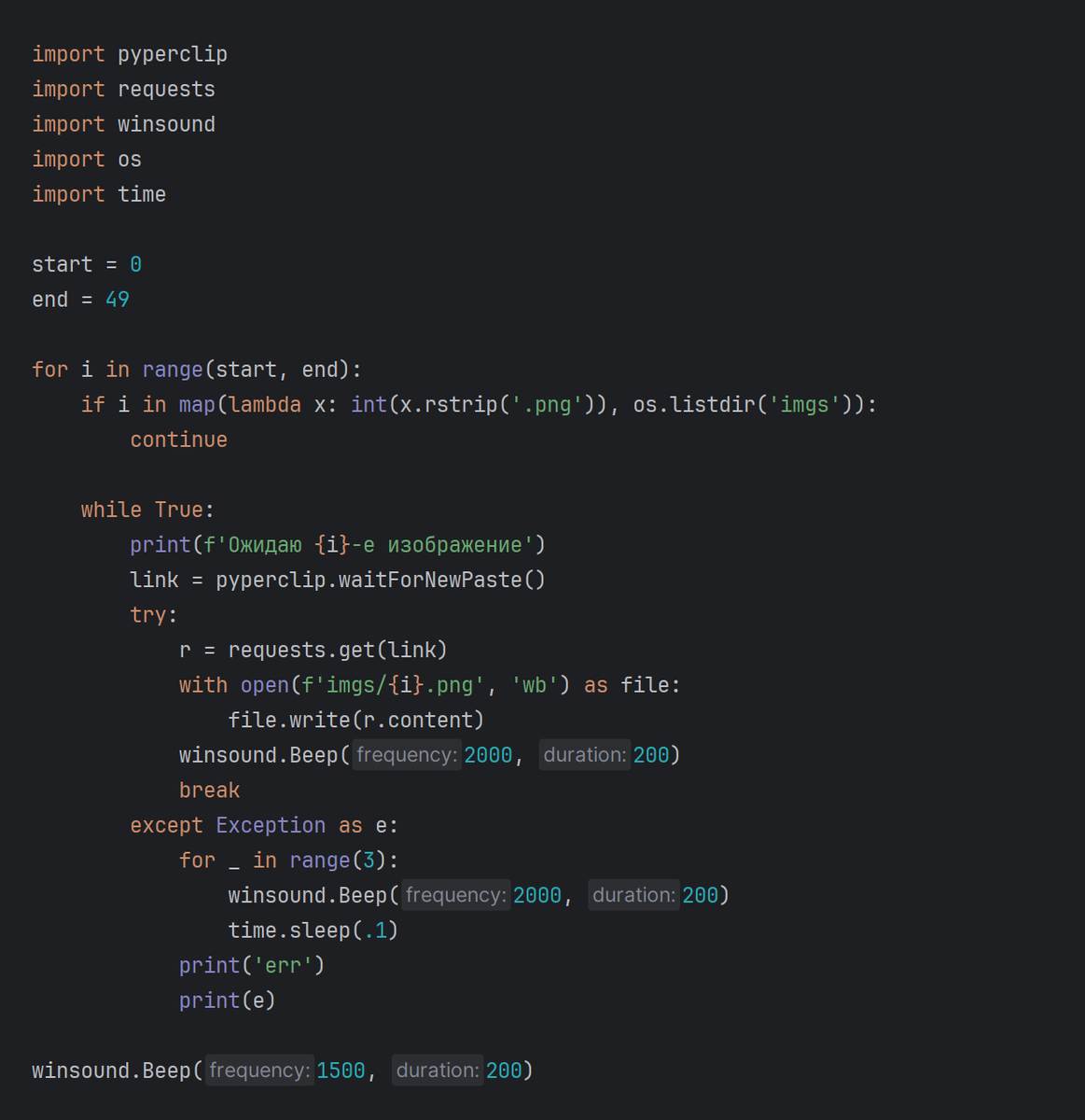 Привет! Так получилось, что я снимаю видео про Python. Я подумал, почему бы не снимать видео с помощью Python. На канале уже давненько лежит видео про прогу, которая автоматически монтирует Shorts. А сейчас на моем монтажном столе лежит видео про PNG, где мне нужно сделать следующий эпизод: за пару секунд поочередно появляется куча картинок как на видео ниже. Тут расскажу, как я это организовал Видео уже вышло, статейка подзадержалась. Посмотреть можно тут Для начала надо было собрать как можно больше разных картинок. Я пробовал искать какие-нибудь архивы в интернете, чтобы скачать всё разом, но не, нету. Поэтому решил ускорить процесс так: я ползаю по яндекс картинкам, выбираю нужные, копирую ссылки на них. Параллельно работает код, который мониторит буфер обмена. Если там новая ссылка, пытается скачать картинку Набросал что-то такое. Скопировать можно тут Задаем количество нужных файлов. Я решил делать 7 на 7 картинок в кадре (кажется, что много и рендерится не очень долго), поэтому