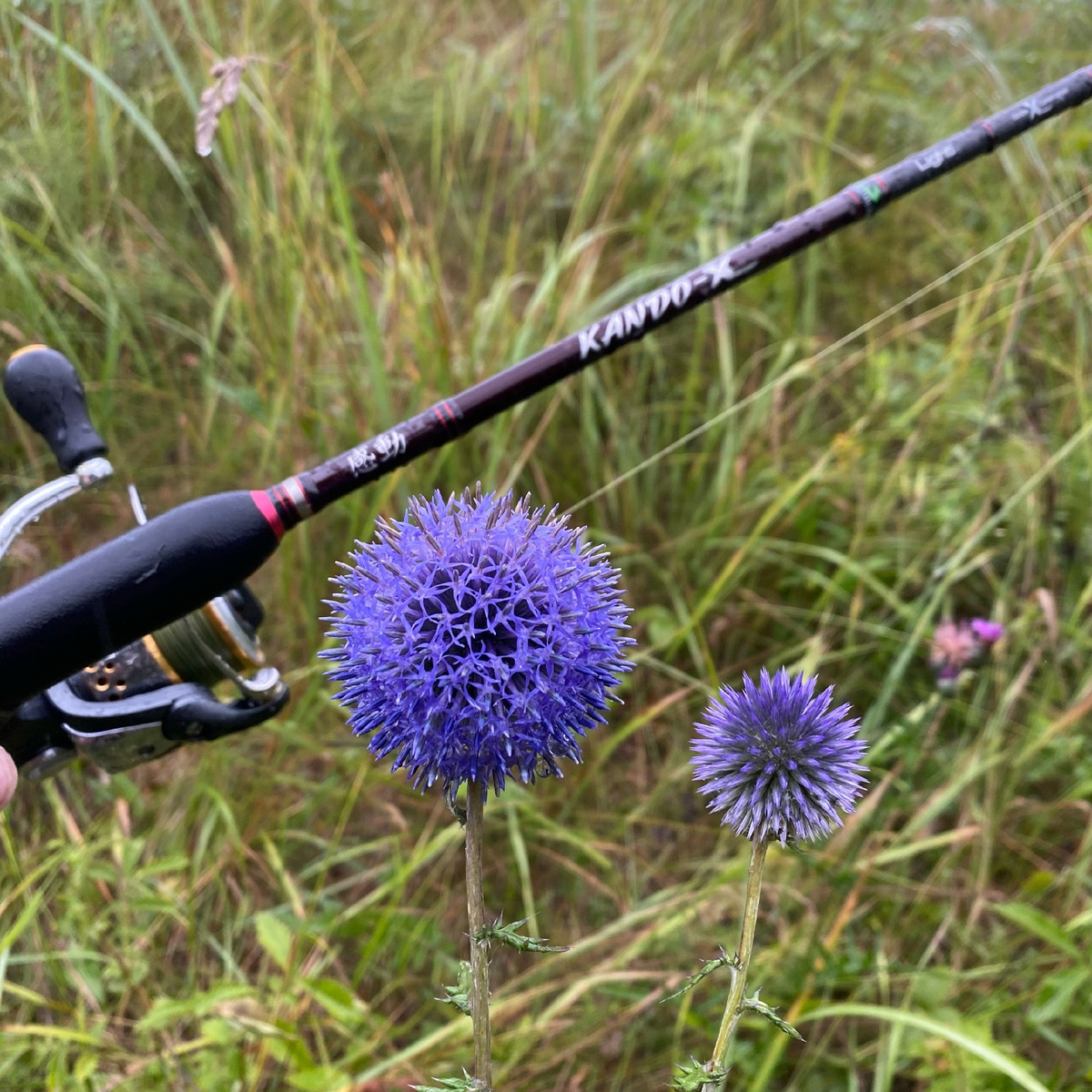 Надо ли писать, что я не посмотрел прогноз и не взял с собой мембрану, а в легком дождевике промок уже минут через двадцать? Но не ехать же домой, тем более удалось за это время достать небольшую краснопёрку и маленького "шнурка", а чуть позже и первого голавлика граммов на сто. А потом в небольшом окошке среди ковра травы с тиной бахнул, как будто молотом, ОН. Рывок в одну сторону, потом резкий в другую. Спиннингом всё контролирую, слегка начиная подтягивать фрикцион, но он не стал дожидаться и нырнул в самые дебри. Пришлось сильней закручивать гайку, зная, что на шпуле проверенная восьмижилка #0.6, и пытаться форсировать. Всё это происходило, наверное, секунд десять, но для меня они длились ой как долго. И только благодаря жёсткости и мощности комля удаётся выкорчевать его вместе с большим пучком травы. В очередной раз убеждаюсь, что подсак большого размера в такие моменты себя оправдывает. Не смог сдержать свои эмоции, и на всю округу было слышно мой победный возглас. Да, это действ