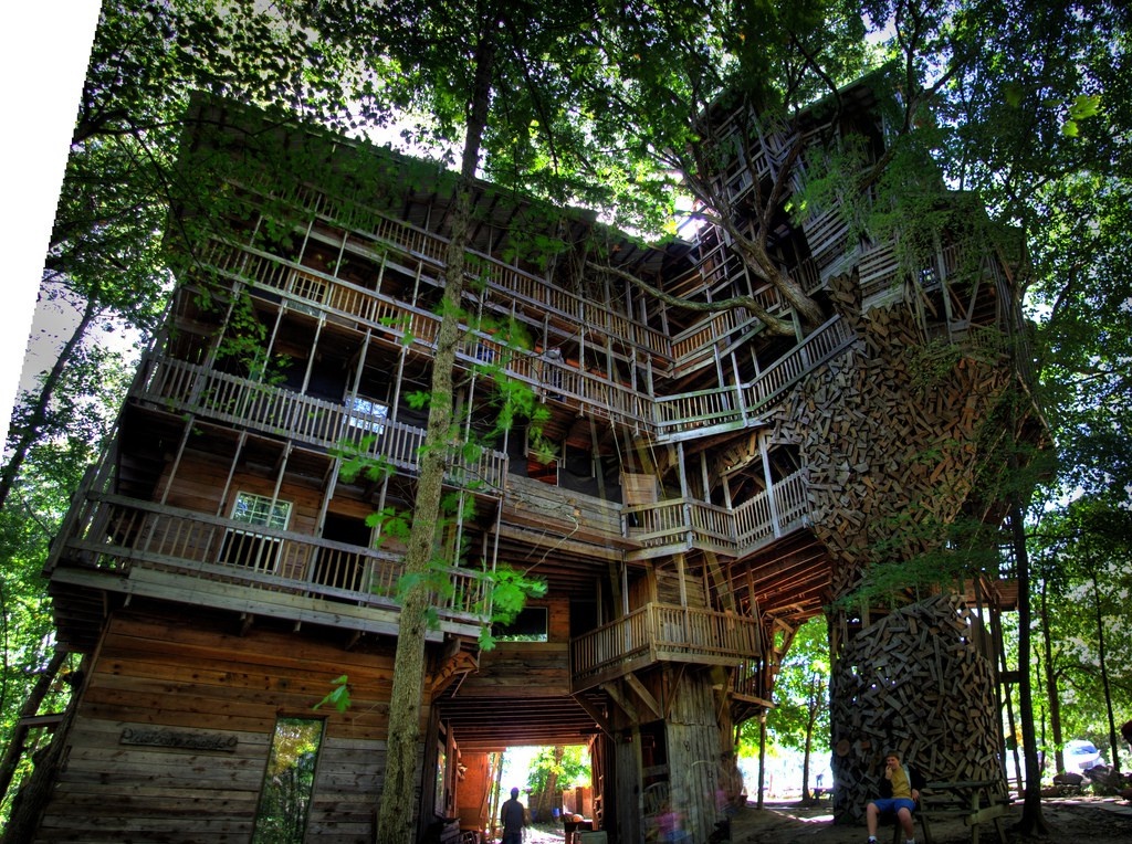 Родиной домов на деревьях по праву считается Америка. Мода на такие сооружения началась относительно недавно благодаря более совершенным технологиям строительства и повышенному интересу к идее экологического жилища. Самым большим в мире домом на дереве является 5-этажное строение высотой в 29 метров, расположенное в Кроссвилле, штат Теннесси. одиной домов на деревьях по праву считается Америка. Мода на такие сооружения началась относительно недавно благодаря более совершенным технологиям строительства и повышенному интересу к идее экологического жилища. Самым большим в мире домом на дереве является 5-этажное строение высотой в 29 метров, расположенное в Кроссвилле, штат Теннесси. один из самых старинных и необычных домов на деревьях. Его называние переводится дословно как «дуб-часовня». Эта уникальная достопримечательность расположена в деревне Аллувилль-Бельфосс во Франции. Дерево, на котором располагается дом-часовня, считается старейшим дубом во Франции и относится к категории ис