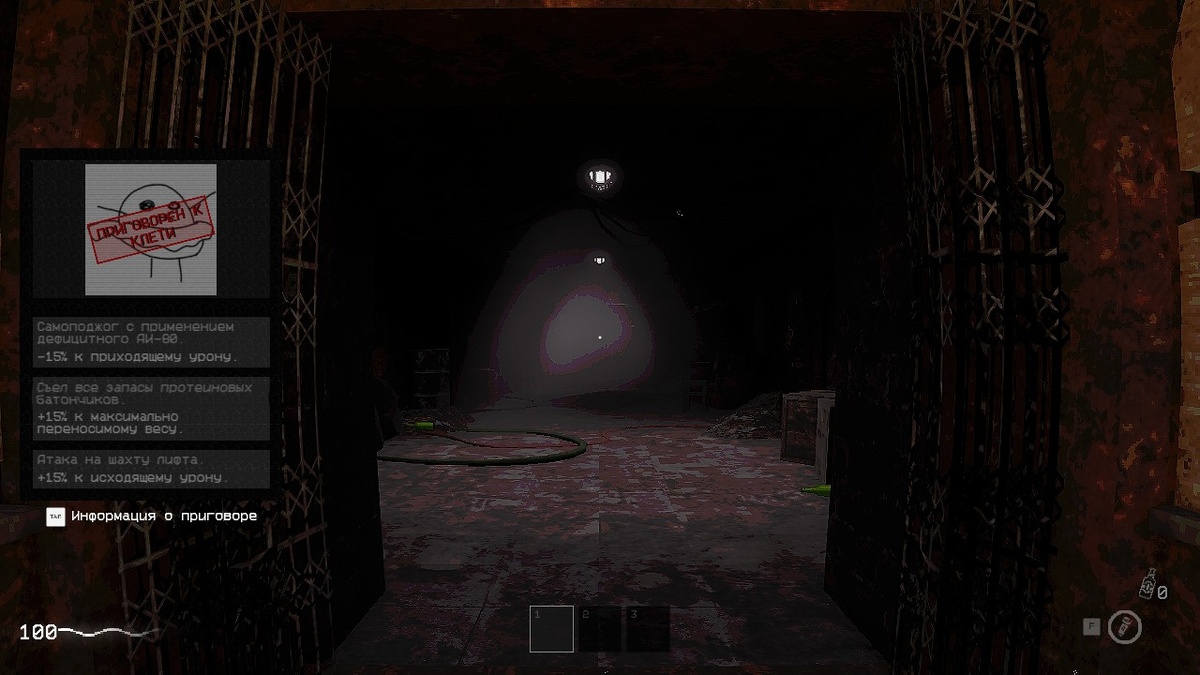 - Рычаг - опускает клеть на следующий этаж, его нужно самостоятельно поднимать, иначе спуск будет продолжаться пока не опустеет баг, или пока вас не съест от голода клеть (посмотрите на потолок);