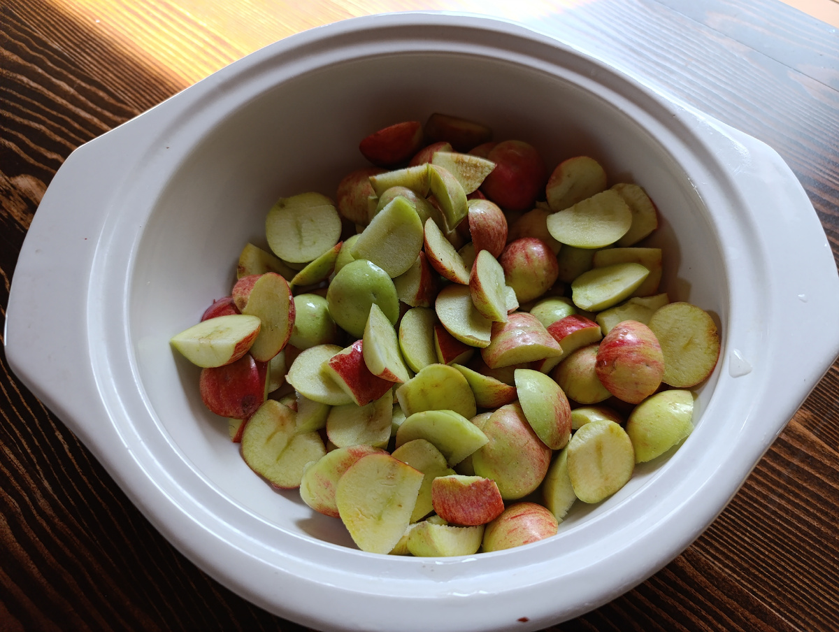 Не так давно я открыла для себя три неочевидных продукта для заморозки на зиму. Вот ведь точно говорят: "Век живи - век учись". Кстати, и с тем, что "дураком помрёшь", я тоже согласна). Первый - белокочанная капуста. Заморозила я для пробы и мне очень понравилось. И шинкованная для дальнейшего тушения, и пластинами для капустной лазаньи. Добрые люди ещё морозят целыми кочанами для голубцов, но не с моим объёмом морозилок. Второй - тёртая морковь. Нет, конечно, я давным-давно её морозила, но использовала только для зажарки в супы. Оказалось же, что размороженная, она ничуть не хуже свежей и я всю зиму с удовольствием ела из неё салаты со сметаной. Третий - резаные яблоки. Их уже просто было некуда девать и я, порезав, заморозила - типа начинка для пирогов. Но они оказались очень вкусными просто в размороженном виде. И куда более полезными, смею надеяться, чем яблоки в магазине. Поэтому, собрав вчера падалицу, вырезала непобитые и безчервячные места и заморозила.