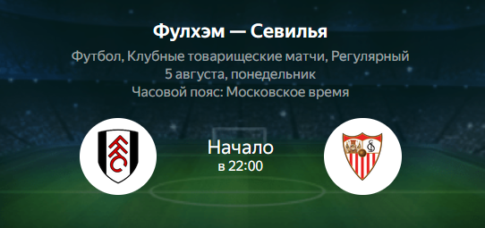 «Фулхэм» и «Севилья» встретятся в товарищеском матче 5 августа. «Фулхэм» в прошлом сезоне выступил более чем достойно в английской Премьер-Лиге, учитывая, что более амбициозных задач, чем сохранение прописки в элите, перед командой Марко Силвы не стояло. Финишировали «дачники» на 13-й строчке в таблице, сумев оторваться от зоны вылета на 11 баллов. «Севилья» откровенно провалила прошлый сезон и некоторое время провела в борьбе за выживание. Однако на финишном отрезке удалось прибавить и последние туры «нервионцы» провели спокойно, финишировав на 14-й строчке. В последнем товарищеском матче команда Хавьера Гарсии Пимента обыграла 2:0 «Гранаду». «Фулхэм» вполне достойно смотрелся на фоне «Бенфики» в последнем товарищеском матче – сумел забить и победить, вполне мог рассчитывать и на большее, чем один мяч. «Севилья» в последних контрольных встречах прибавила, в том числе и в реализации, поединок наверняка получится результативным.
