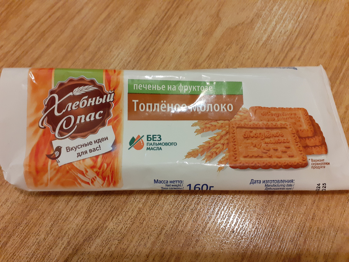 1. Печенье 'Топленое молоко' (Хлебный спас). Заметила для себя, что продукция компании Хлебный Спас мне очень нравится. Вот и это печенье не разочаровало. Печенье на фруктозе. Покупала в Спар за 84.9 руб. Масса 160 гр. В 100 гр: 7.5 белки, 17 гр жиры , 66 гр углеводы, 447 ккал. Оценка: вкус на 10 из 10. Буду брать еще, если захочется печенья с чаем. 2. Арахисовый батончик Musler pro. Покупала батончик в Магните за 49.99 руб по скидке (без скидки 85 руб). Вес 60 гр. Очень сытный. В 60 гр: 6 гр белки, 6 гр жиры, 36 гр углеводы, 220 ккал. Состав: патока крахмальная, арахис жареный, подсластитель сорбит и тд. Оценка: за такую цену (которая по скидке) очень даже хорошо. Не прям ах ах, но как перекус с чаем - очень даже. 7 из 10. Буду брать, если по скидке.