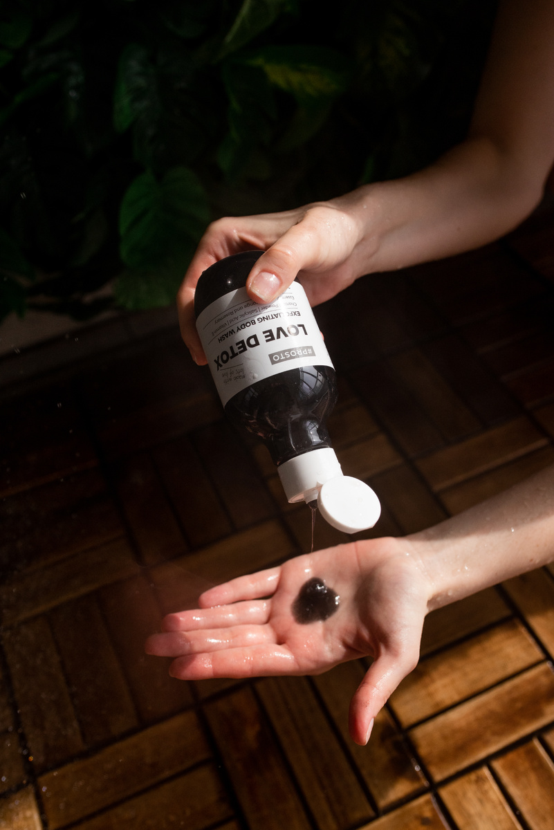 У нас есть экологичное и безопасное решение этой проблемы. Поможет черный гель для душа LOVE DETOX, который оставляет на коже экзотический аромат эфирных масел апельсина и бергамота. Средство имеет густую консистенцию черного цвета на основе активированного угля. Благодаря маслам и витамину Е в составе, мягко питает кожу, оставляя ее увлажненной. Подходит для всех типов кожи.
