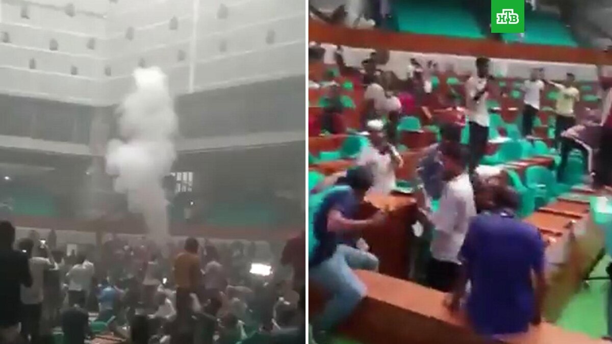 [ Смотреть видео на сайте НТВ ] Столица Бангладеш Дакка сегодня окончательно погрузилась в хаос. Протестующие ворвались в здание парламента страны. Видеозаписи, на которых толпа бесчинствует в парламенте, распространяются в соцсетях. На кадрах видны люди, которые расселись в креслах депутатов, положив ноги на столы. Многие стоят на столах и курят, другие снимаюто происходящее на мобильные телефоны. На некоторых видео можно увидеть клубы дыма в зале заседаний и разбросанные на полу бумаги. Ранее сегодня премьер-министр Шейх Хасина улетела из страны на военном вертолете в Индию, а толпа протестующих разгромила ее резиденцию, дом министра внутренних дел, разбили статую основателя страны Шейха Муджибура Рахмана и ворвались в офис правящей партии. Вандализм, поджоги и грабежи охватили всю столицу. Обстановка в Бангладеш начала накаляться в июле, когда студенты вышли на демонстрации протеста против системы квот на рабочие места в госсекторе. По распоряжению правительства, треть вакансий была