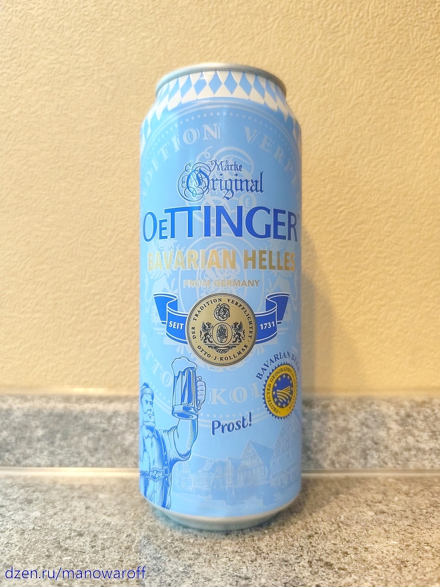 Сегодня, как вы понимаете, мы будем пробовать продукцию баварской пивоварни Oettinger Brauerei. А конкретно хеллес, не так давно появившийся на полках супермаркетов сети "Да!". Практически все попробованное мной пиво от этой пивоварни было средненьким - только двум сортам я поставил восьмерки, а остальные оценил на 5-6 баллов. Так что и от сегодняшнего хеллеса я ничего этакого не ожидаю. Производитель о своем пиве ничего не пишет, так что обойдемся без описания и сразу перейдем к дегустации. Пиво у меня из майской партии, а попробовал я его через три месяца после розлива. Срок годности составляет 15 месяцев при комнатной температуре. ТТХ: Пиво золотистое, прозрачное. Пены среднее количество, стойкость тоже средняя. Аромат солодовый, с цветочками. Вкус тоже солодовый, с цветочными нотками и хлебными оттенками. В послевкусии легкая горчинка травянистого хмеля. Пиво легкое и весьма питкое. Средненький хеллес, на семерочку. Но что еще хотеть за 100 рублей? Продегустированное пиво от пивова