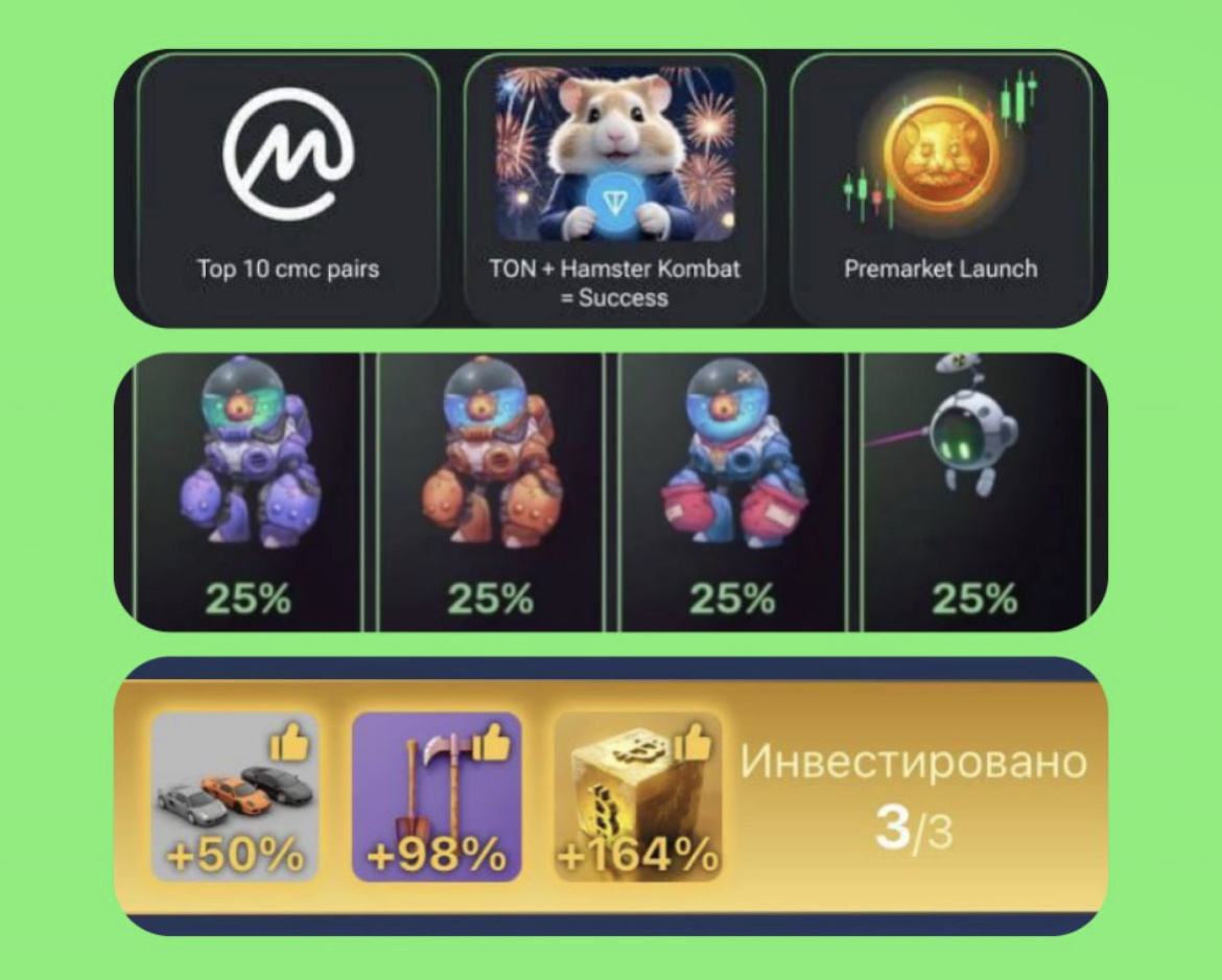 ❕ Ежедневные комбо и задания для тапалок 05.08 🐹 Hamster Kombat — Top 10 cmc pairs — TON + Hamster Kombat — Premarket Launch 🐹 Шифр 🤩 Pixelverse — Расположите персонажей также, как на скриншоте ✉️ Musk Empire — Прокат автомобилей в Дубае — Инструменты для добычи золота — Блокчейн-проекты Загадка: monopoly Ребус: assets 🪙 MemeFI Делите экран на 4 части сверху вниз (1-2-3-4) — Быстро тапаете 4 - 2 - 2 - 4 🐰Комбо Rocky Rabbit — Издание книги — Турнир Зенит — Подготовка к соревнованиям 🐶Lost Dogs — Победа Охота (крепкое) — Начался новый выбор (выбирайте самое непопулярное)