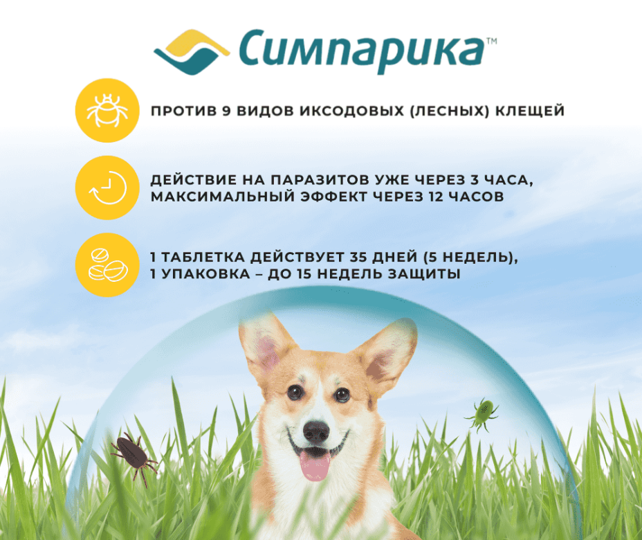 Симпарика очень полезная, она помогает собакам бороться с энтомозами, вызываемыми блохами, акарозами, вызываемыми иксодовыми, саркоптоидными, псороптоидными и демодекозными клещами.