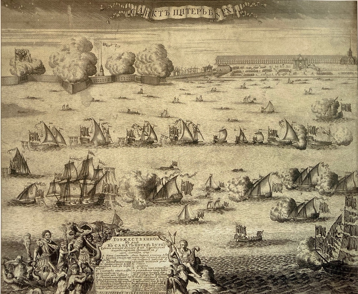«Господь Бог Россию прославить изволил, ибо, по многим дарованным победам на земле, ныне и на море венчати благоволил… и так сею, мню, николи у нас бывшею викториею вас поздравляем. Сия виктория Полтаве подобна, токмо морская». ПЕТР I.