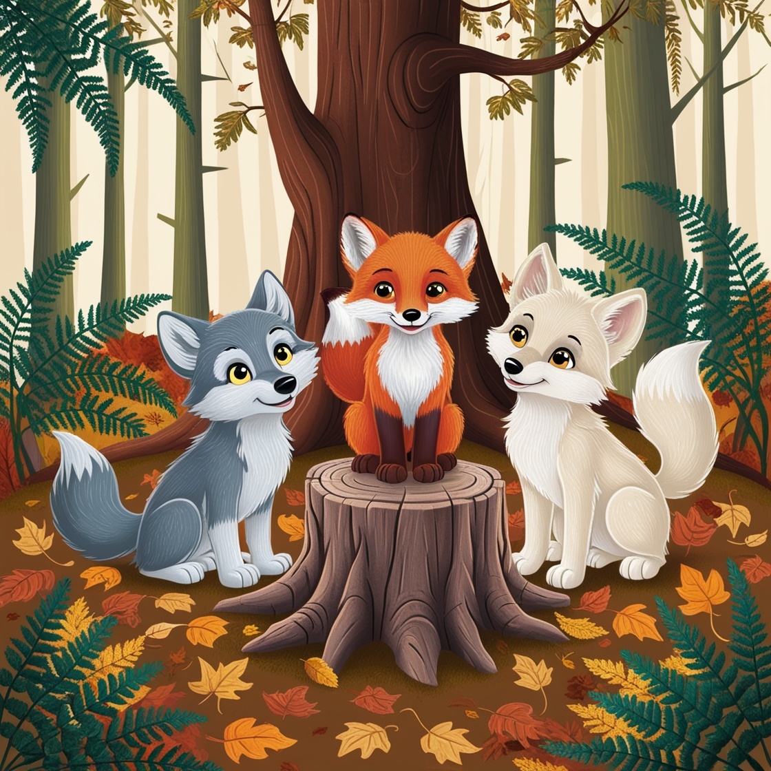 Давным-давно в волшебном лесу жили маленькая волчица по имени Луна, игривый лисенок по имени Феликс и любопытный волчонок по имени Майло. Они были лучшими друзьями и любили гулять вместе. Однажды солнечным днем они нашли посреди леса таинственный сверкающий камень.