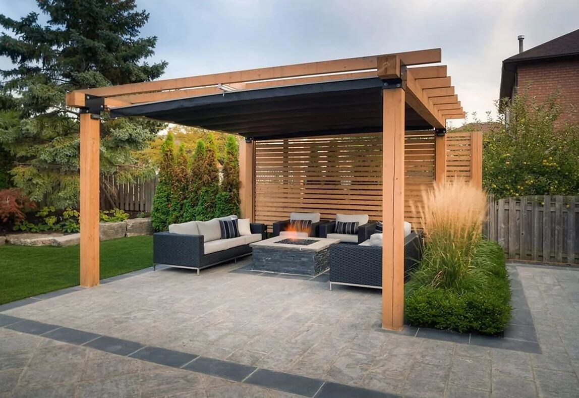 Друзья, приветствую вас. Сегодня мы разберем с вами пример небольшой зоны отдыха, отметим ее особенности и постараемся дать им какую-то оценку. Итак, начнем. Для начала, попробуйте как следует рассмотреть это изображение. Проговорите вслух, а еще лучше – запишите все, что вы видите. Постарайтесь описать для себя каждую деталь в подробностях. Это простое упражнение поможет вам сосредоточить свое внимание на мелочах, а главное - увидеть взаимосвязи между ними. Первое, на что я хочу обратить ваше внимание, это беседка, точнее, пергола с выдвижным тентом. Простота ее формы позволяет ей относительно органично вписаться в любой контекст. Этому способствует и сам материал (натуральное дерево). Выдвижной тент расширяет функционал такой перголы, позволяя ей оставаться легкой и светопроницаемой, а при необходимости создавать тень и защищать от небольшого дождя. Со стороны улицы (или со стороны соседей) пространство беседки отделено легкой деревянной ширмой. С права беседка визуально отделена