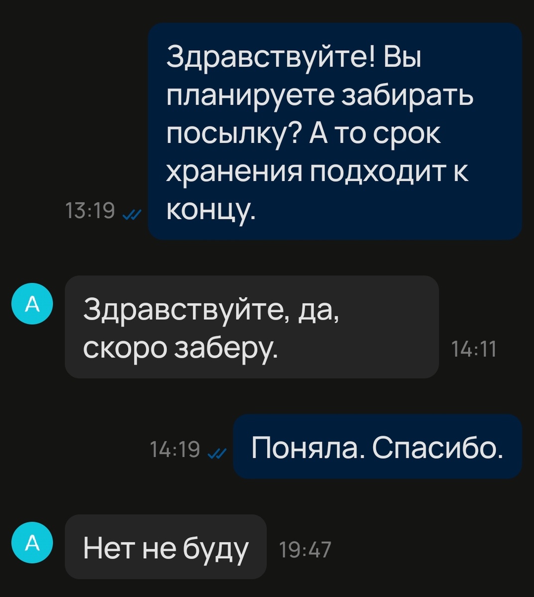 Сегодня у меня будет скандальная статья про наглого покупателя и возврат. Начну с того, что я считаю возвраты на Авито абсолютно нормальным явлением. Не могу сказать, что я их трепетно люблю, но если они случаются, воспринимаю их естественно и без надрыва, не осыпая покупателя скверными эпитетами. В конце концов правилами Авито это предусмотрено, и каждый продающий априори с этим согласен, иначе объявления он бы просто не размещал, а раз разместил, значит на всё согласен. Возвраты у меня бывают не часто, и как правило возвращенная вещь совсем скоро находит нового покупателя. Я очень благодарна всем людям, которые у меня что-либо покупают, поэтому отношусь к ним и их правам с уважением. Я веду себя с покупателями всегда крайне корректно. Никогда не уведомляю их от своего имени о прибытии посылки (за меня это сделает служба Авито), и тем более никогда не прошу покупателя забрать посылку поскорее. Терпеливо жду до предпоследнего дня хранения и только потом спрашиваю покупателя, планируе