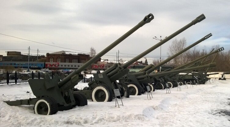 Здесь, под открытым небом можно увидеть то оружие, которое во время войны выпускал Ленинский завод