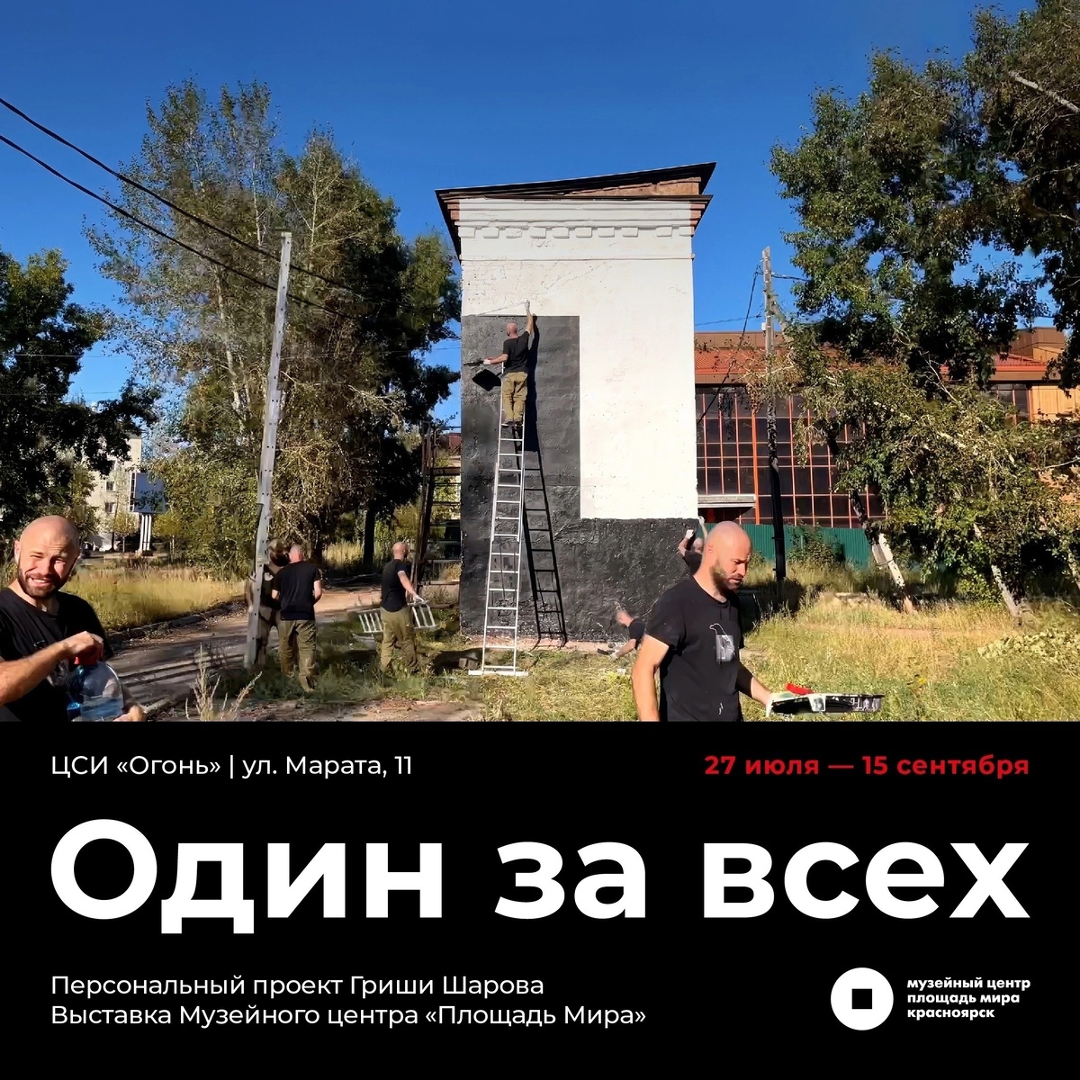 70 фотографий, копий и эскизов фестивальных работ, авторами которых стали 44 художника из России и нескольких стран дальнего и ближнего зарубежья, представлены в необычной экспозиции в Центре современного искусства «Огонь» в Иркутске (ул. Марата, 11). Все они представлены на выставке «Один за всех», получившей название в честь четырёх сезонов самого необычного фестиваля стрит-арта, проходившего в Братске с 2020 года. Его организатором, вдохновителем и, так уж вышло, соавтором всех участников стал уроженец Братска Гриша Шаров. Выставка необычна вдвойне. Во-первых, стрит-арт – это уличное искусство, и каждый элемент работы художника так или иначе дополняет окружающую действительность, обыгрывает её, придавая привычным объектам или зданиям новые оттенки смысла. Это значит, что перенести и уместить в галерею изображения, занимающие порой целые стены, можно, только сфотографировав их или сделав небольшие копии. Во-вторых, фестиваль, давший выставке имя, и сам по себе был оригинален, так как