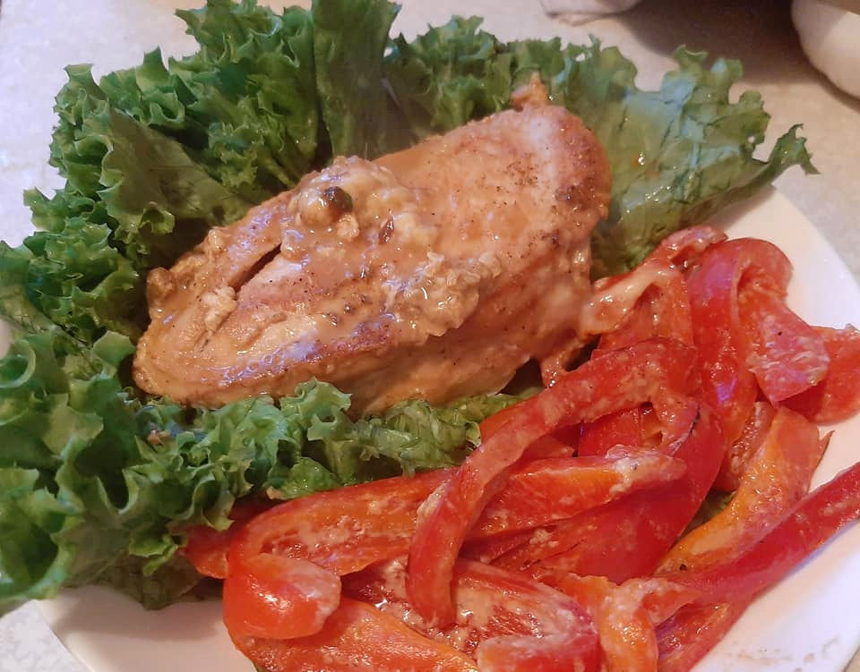 Куриное филе с сыром и болгарским перцем в сливках